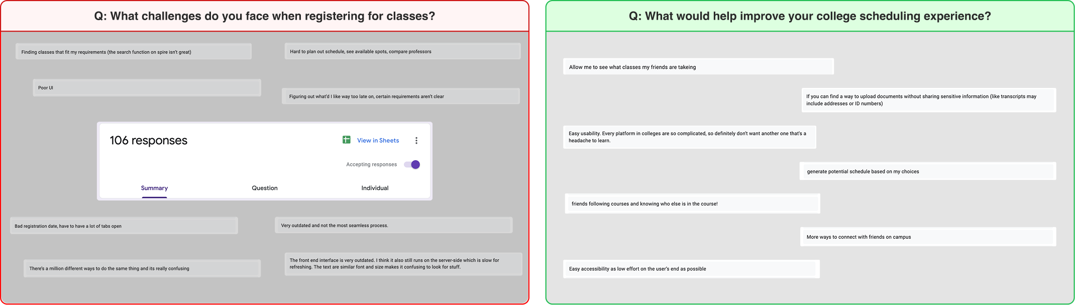 We surveyed 100+ college students across 20+ universities nationwide on their current pain points in their scheduling experience.