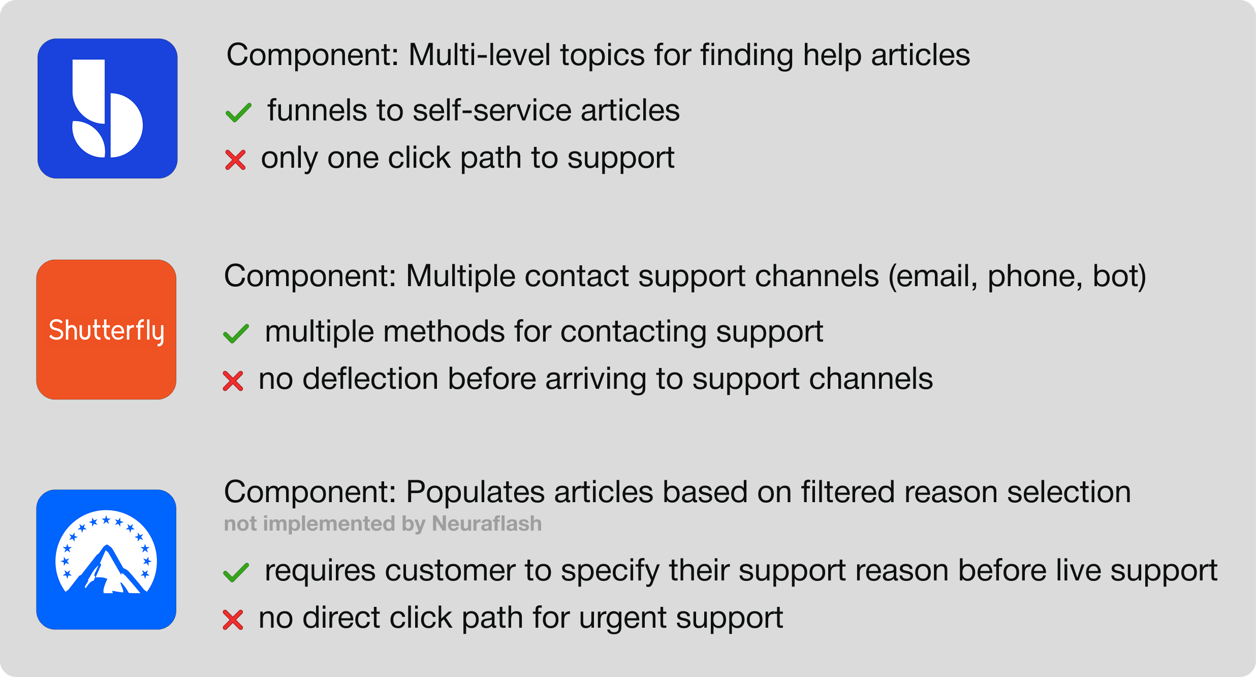 Competitive analysis helped identify which features would create a well-defined deflection funnel.