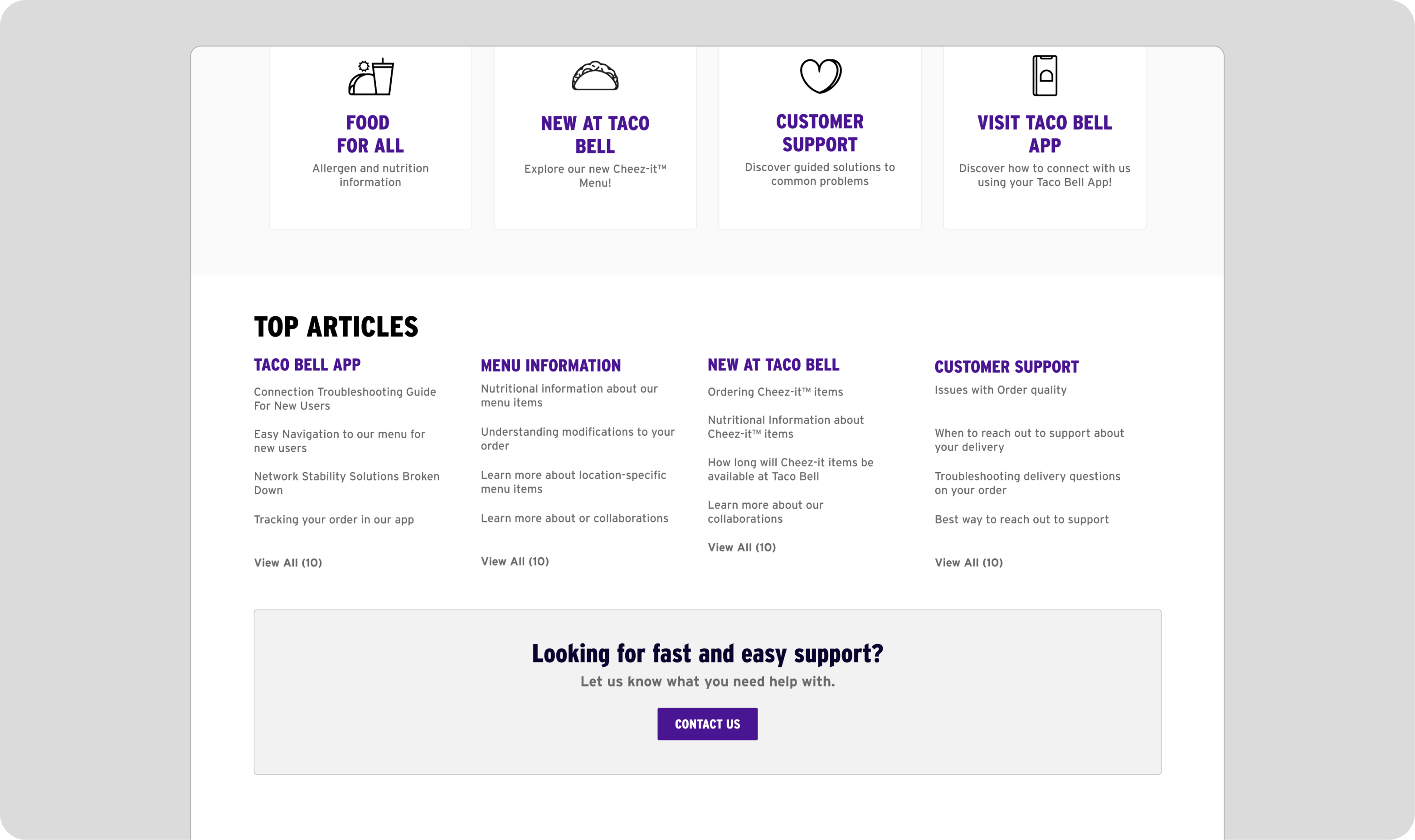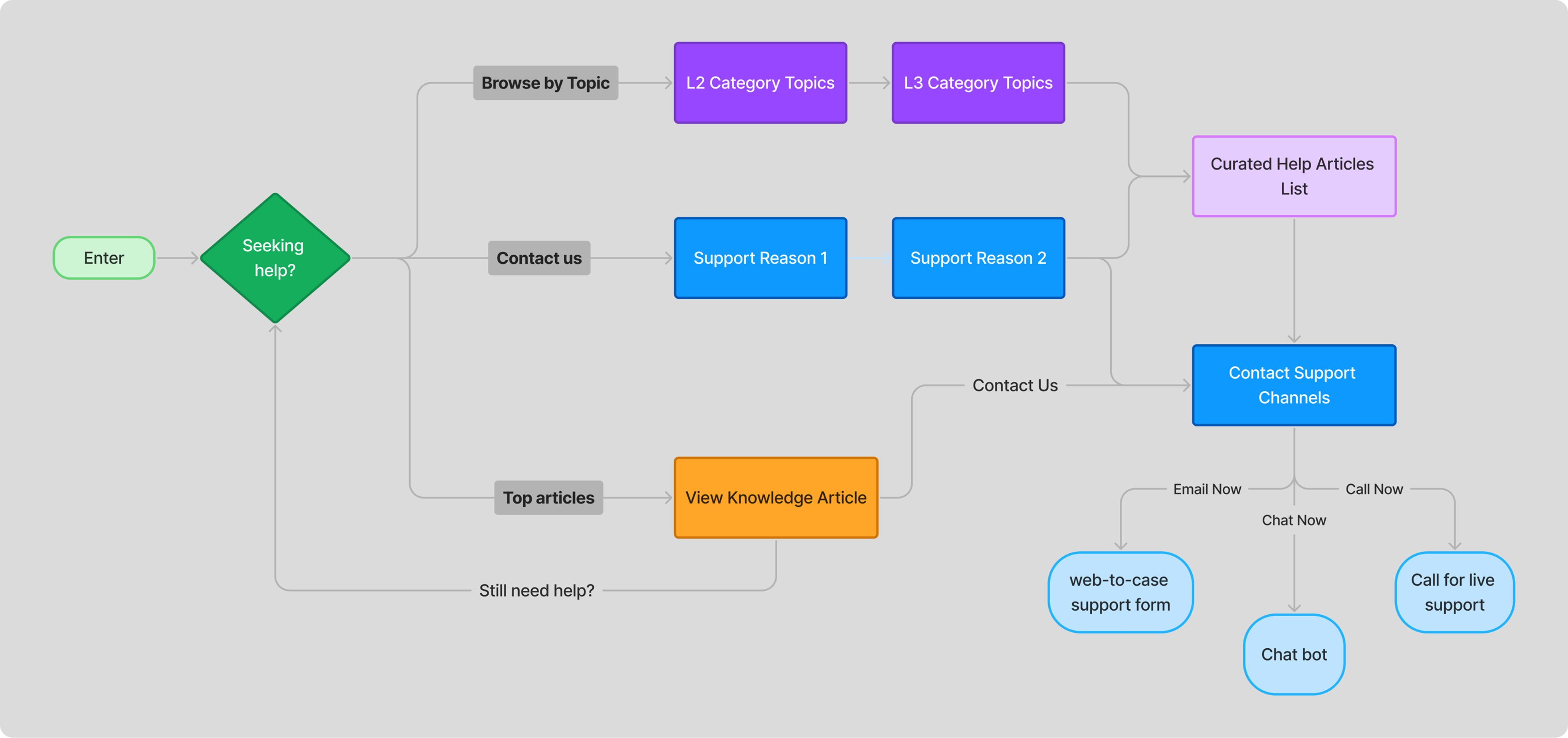 As a result, the user flow gives users the option to get help right away, but nudges them towards self-service first.