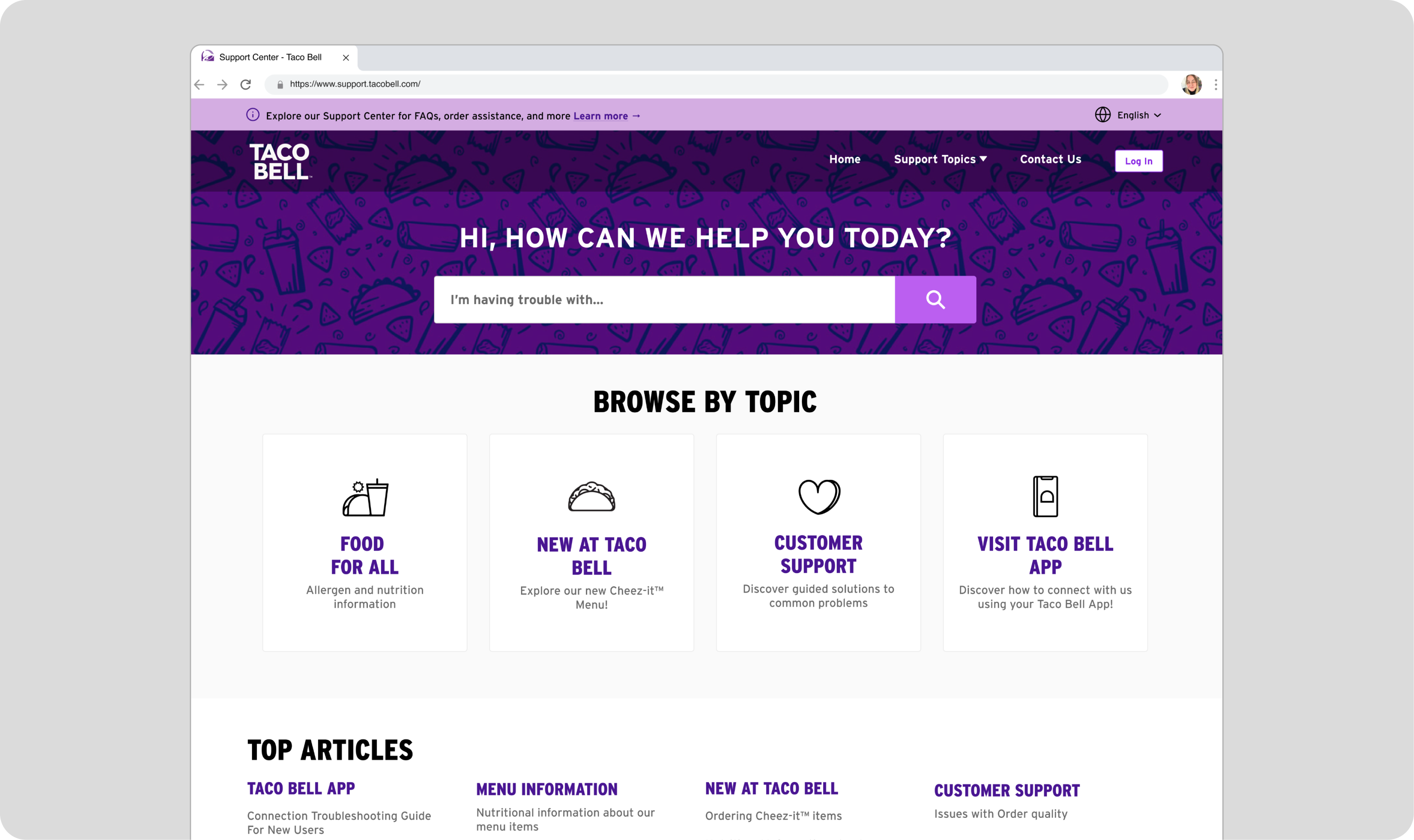 Deflection path #1: customers are immediately presented with help topics for self-service