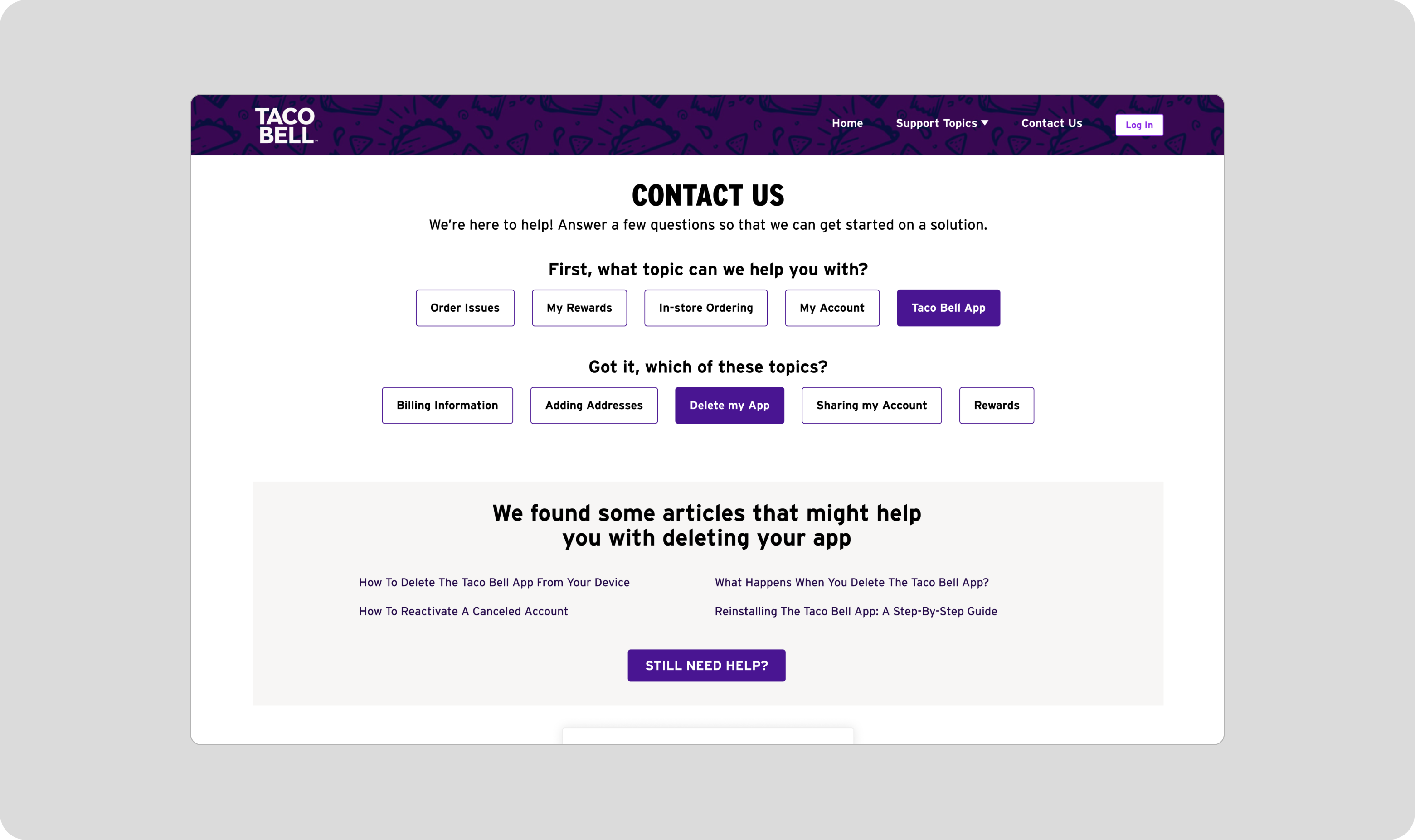 Deflection path #3: Tiered topic narrowing provides curated help articles